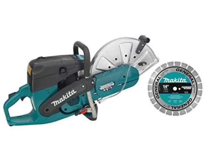 This saw along with a diamond blade is used to cut materials such as concrete and asphalt. We rent the blade and charge by the amount used. This saw can definitely cut it!