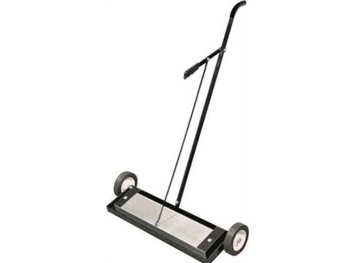A VERY powerful magnet on wheels pics up those nails, tacks, bolts, and all other small steel or iron objects that pose a risk around the home. Great idea to use this after a roofing job to pick up dropped roofing tacks! Easy to release once captured with the lever provided.