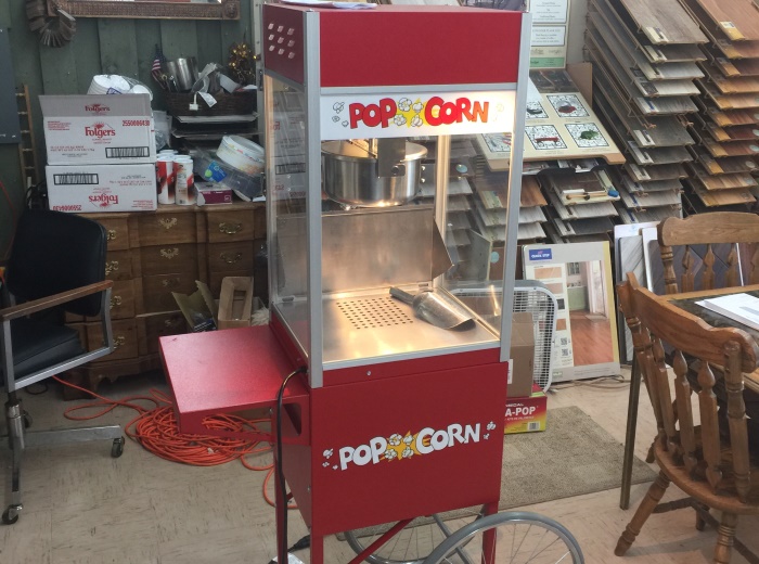 Your party will be complete with this popcorn popper. We haven't wanted to rent it because we have been using it to pop our daily limit of great corn in the store! We have everything you need, oil, corn, bags, etc. Just add people and mix well!